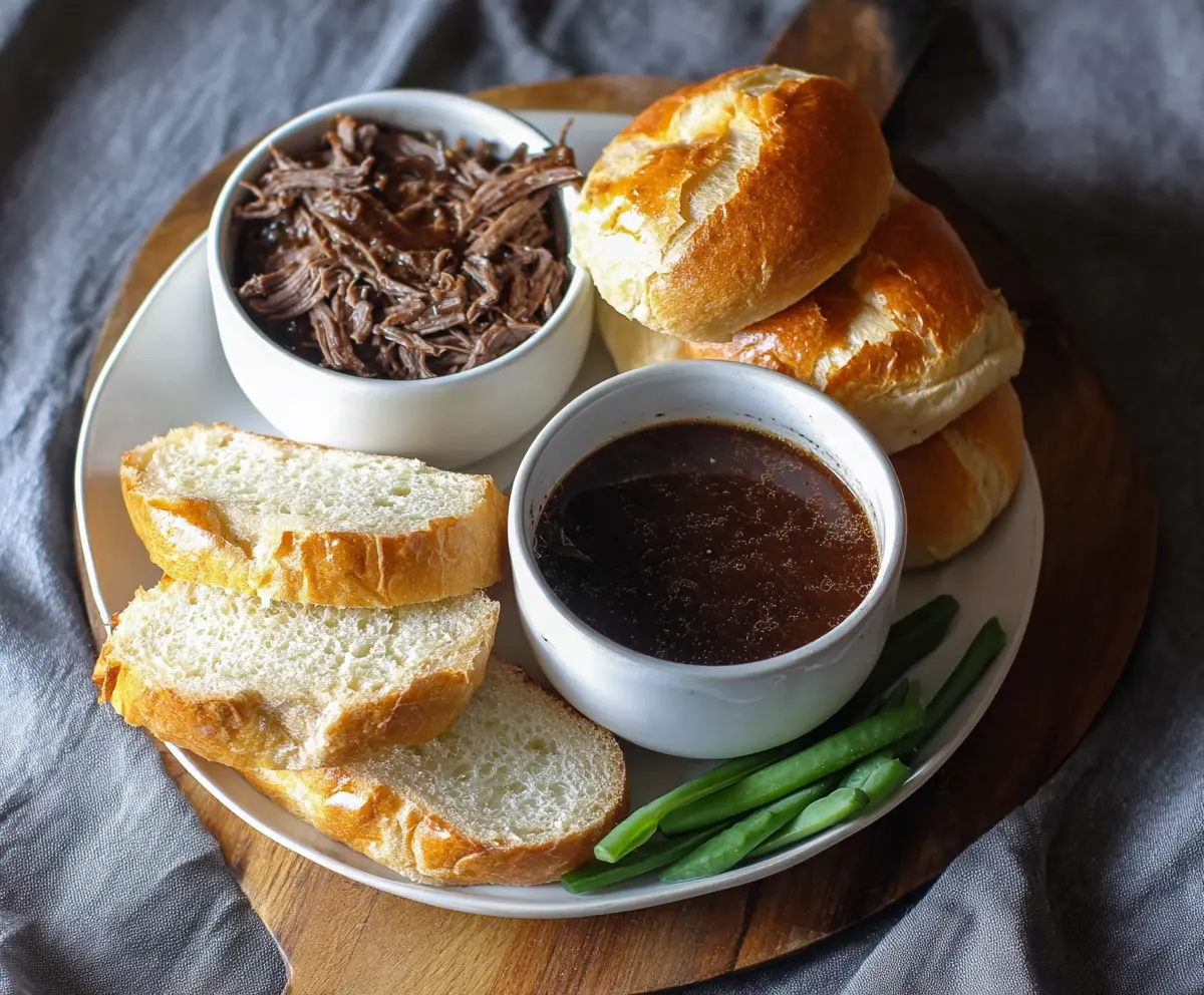 Transfer the shredded beef to a serving bowl and add a small bowl of the broth on the side for dipping. Serve it up with your sliced baguette or crusty bread. Now it’s time to dig in!