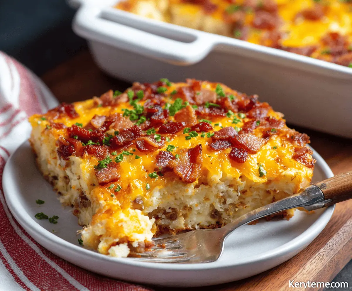 Let the casserole rest for about 5 minutes before slicing. This little break helps it hold its shape when you serve it. Then, dig in and enjoy this hearty, cheesy breakfast delight!
