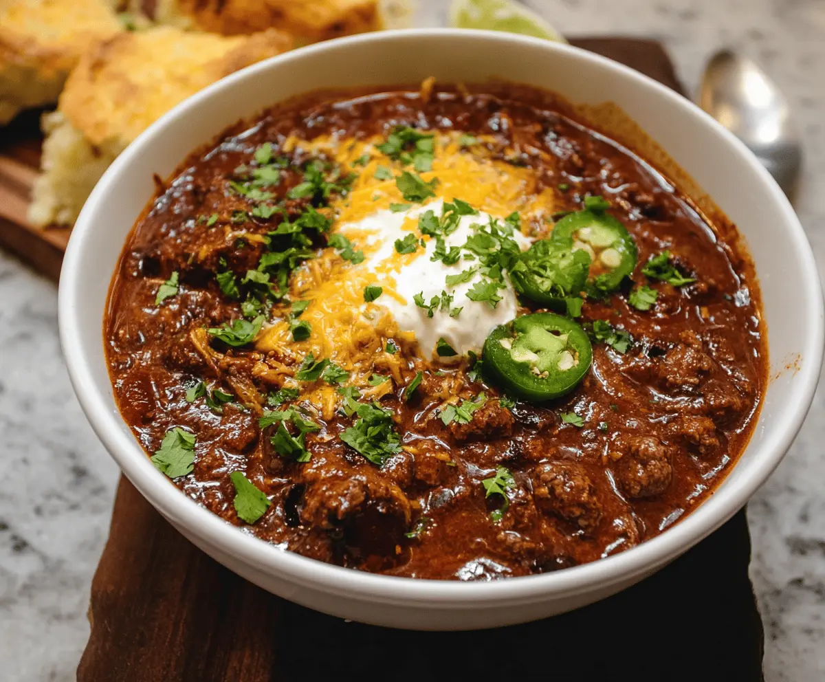 Now, your rich and flavorful beef chili is ready to enjoy. It’s perfect for those cozy nights in or for sharing with friends on game day!