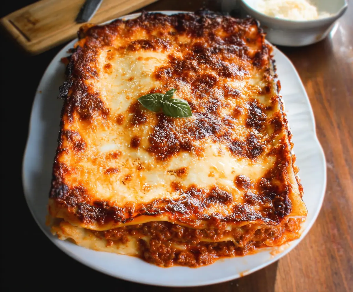 After baking, let the lasagna rest for about 10-15 minutes before serving. This resting time helps set it up for easier slicing. If you’d like, garnish with fresh basil leaves for a lovely touch. Enjoy your rich, hearty Bolognese Lasagna with that perfectly browned cheesy crust!