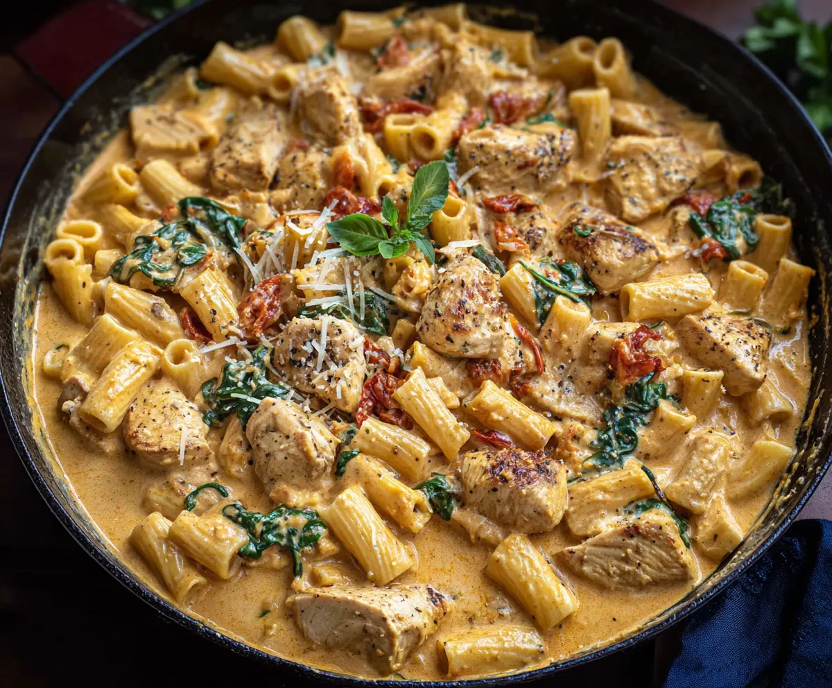 This Chicken Creamy Tuscan Pasta is a comforting bowl of goodness! It features tender chicken, creamy sauce, and fresh spinach, all mixed with pasta for a delightful meal.