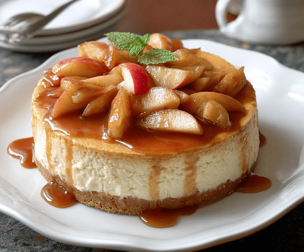This recipe results in a rich and creamy cheesecake with a buttery graham cracker crust, topped with delicious, warm cinnamon-spiced apples. It’s sure to impress!