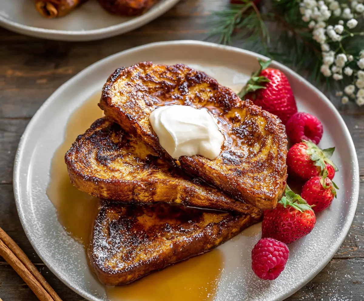 Top your French toast with a generous dollop of whipped cream and a sprinkle of extra cinnamon if you like. For added sweetness, drizzle it with warm maple syrup. Don’t forget to add fresh strawberries and raspberries on the side for a vibrant finish!