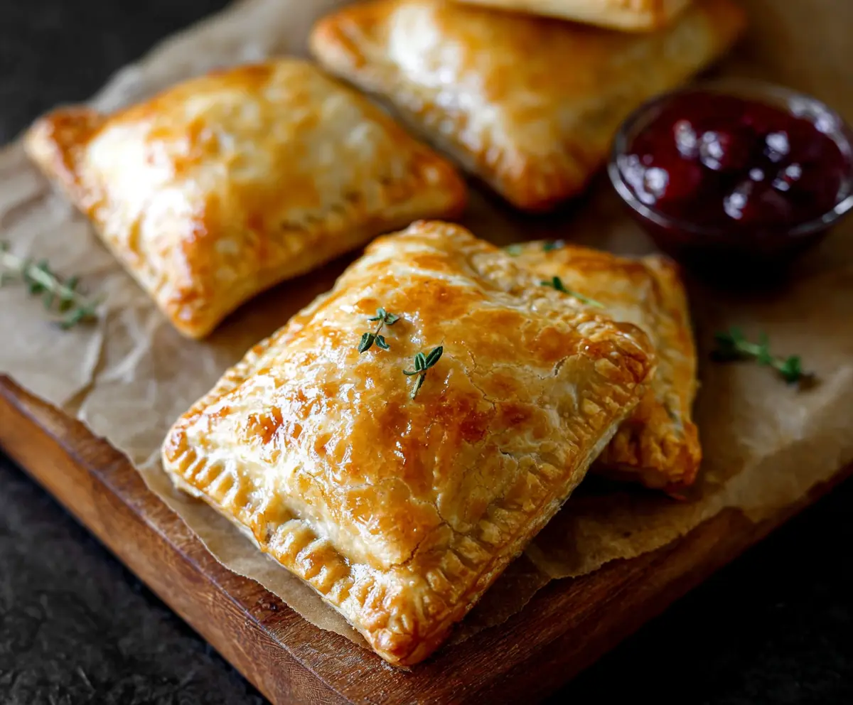 These mini hand pies pair wonderfully with a side of mixed greens or a cranberry dipping sauce. You could also serve them with a glass of sparkling wine or a warm mulled cider for a festive touch!
