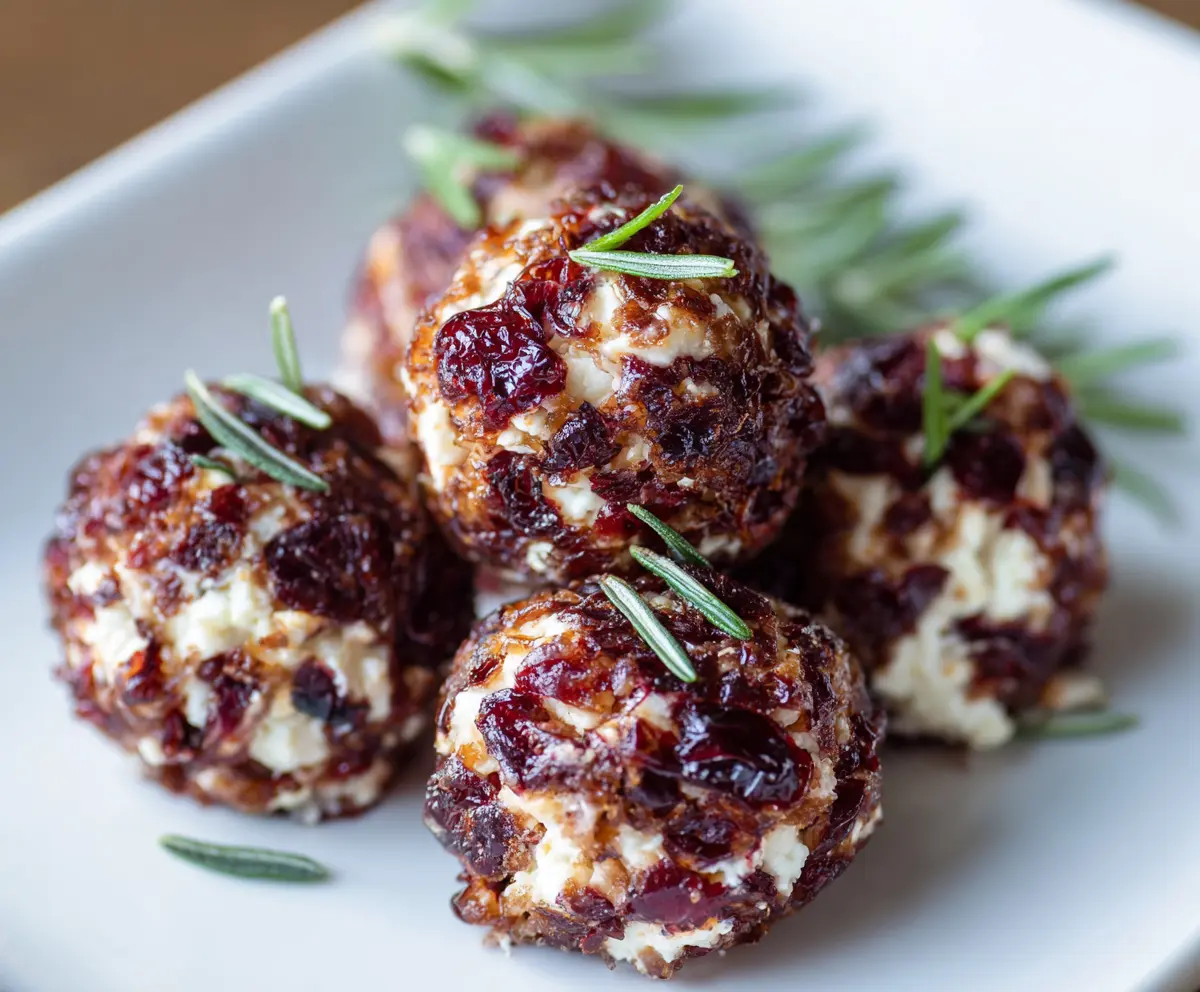 Cranberry Goat Cheese Balls served as a festive appetizer garnished with fresh herbs.