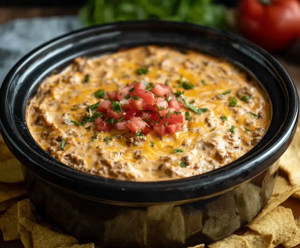 This Crock Pot Cheeseburger Dip is cheesy, meaty, and super easy to make! Loaded with ground beef, cream cheese, and tasty seasonings, it’s perfect for game day or a cozy night in.