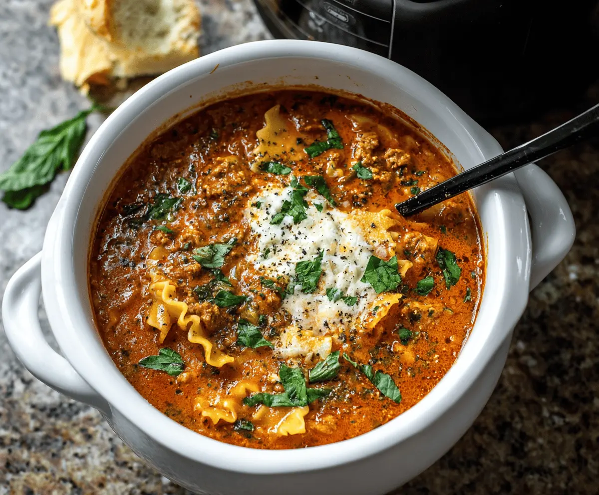 This creamy, cheesy, meaty soup offers all the comforting flavors of classic lasagna with an easy crockpot twist. Enjoy the warmth and comfort! 🌟