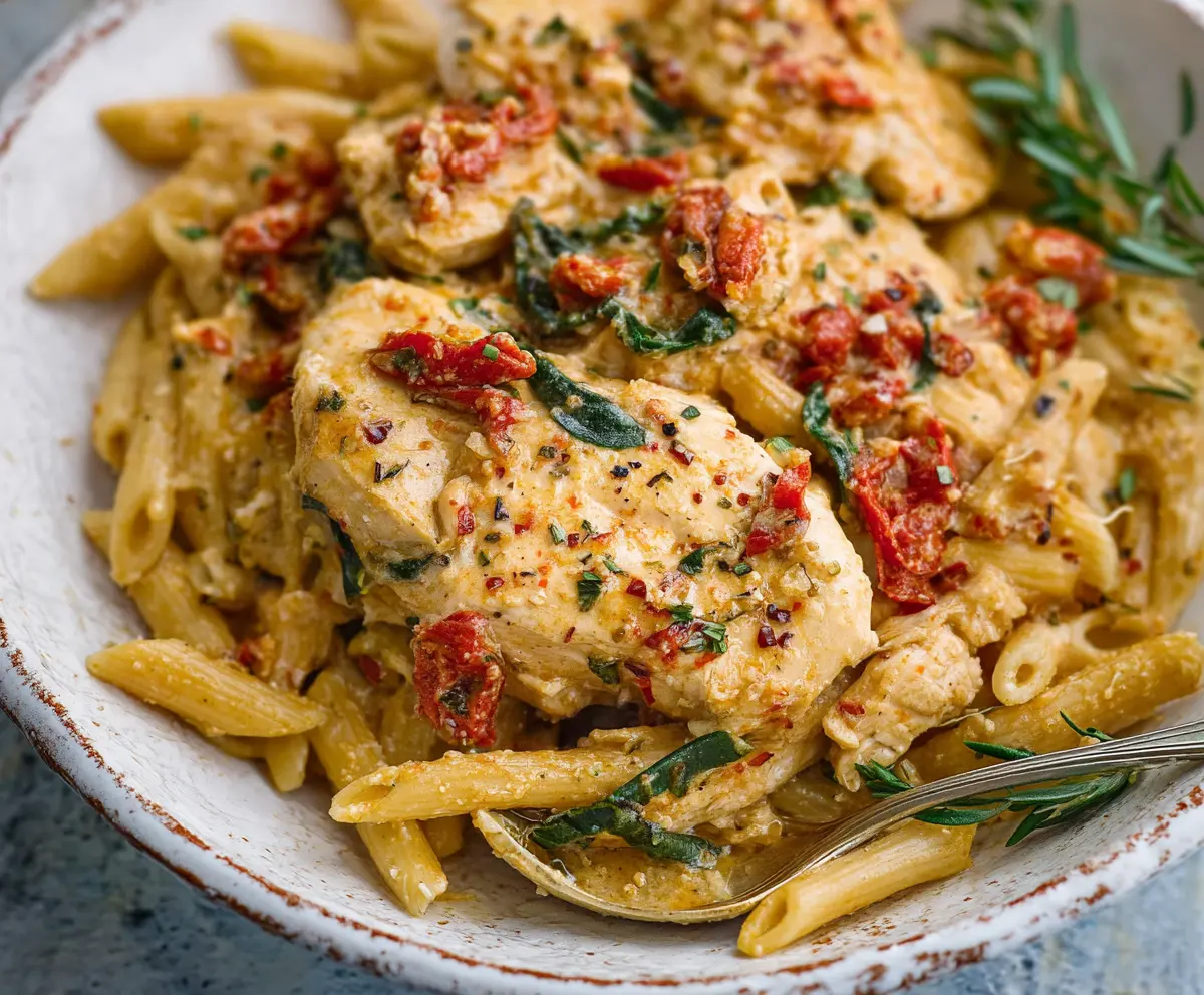 Crockpot Tuscan Chicken Pasta