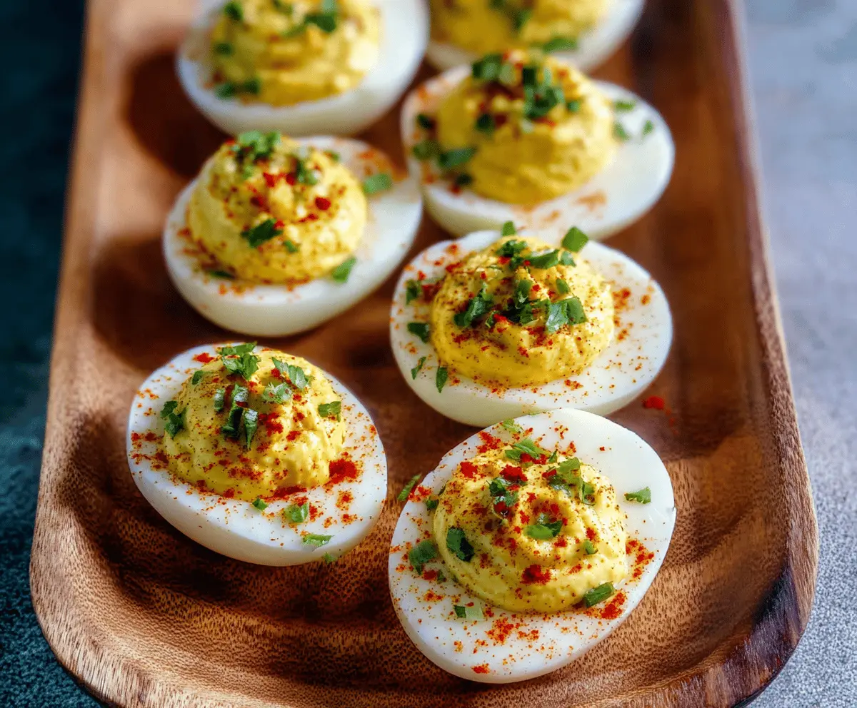 Delicious deviled eggs with a creamy mustard filling, perfect for appetizers and parties.