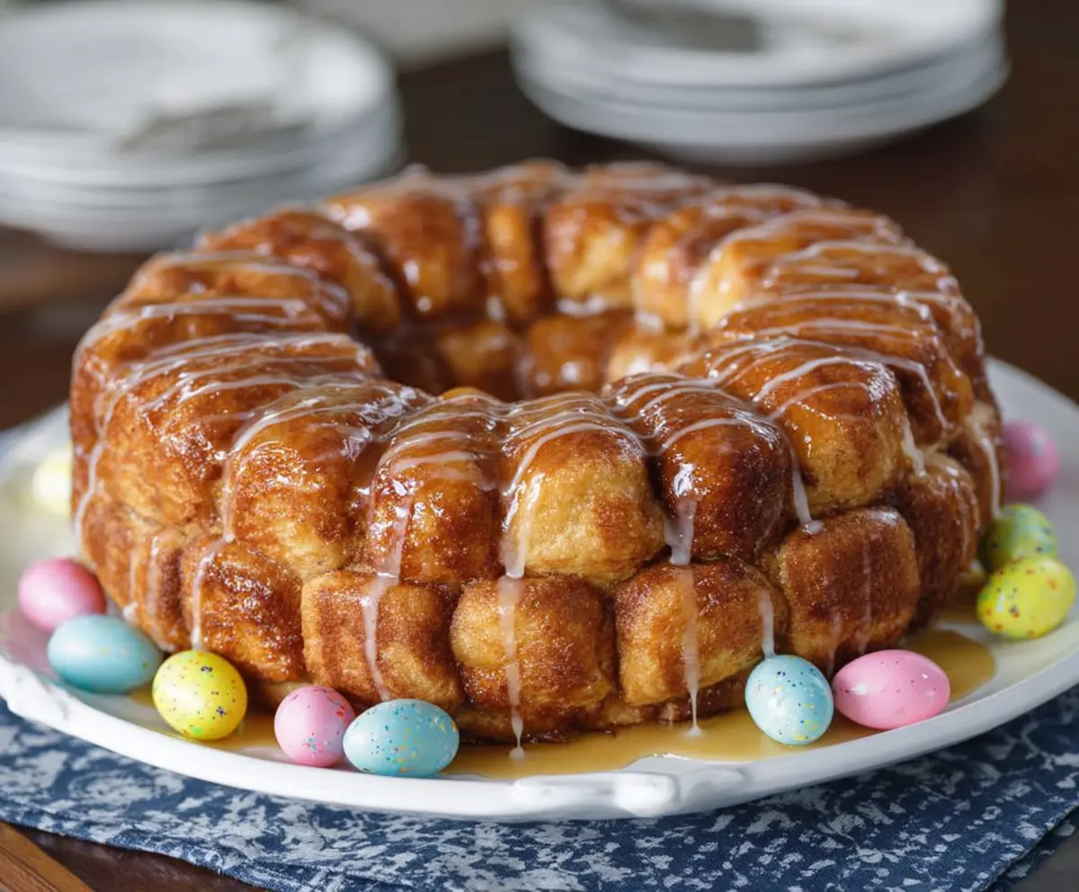 Don’t rush this step—let the monkey bread cool slightly before you drizzle. This keeps the glaze from melting away and helps it cling beautifully!
