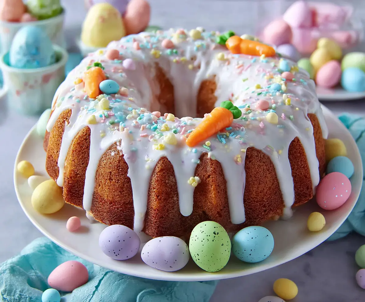 This lovely Easter Bundt Cake is moist, fluffy, and perfect for your spring celebrations! Topped with pastel icing and sprinkles, it has a delightful festive look.