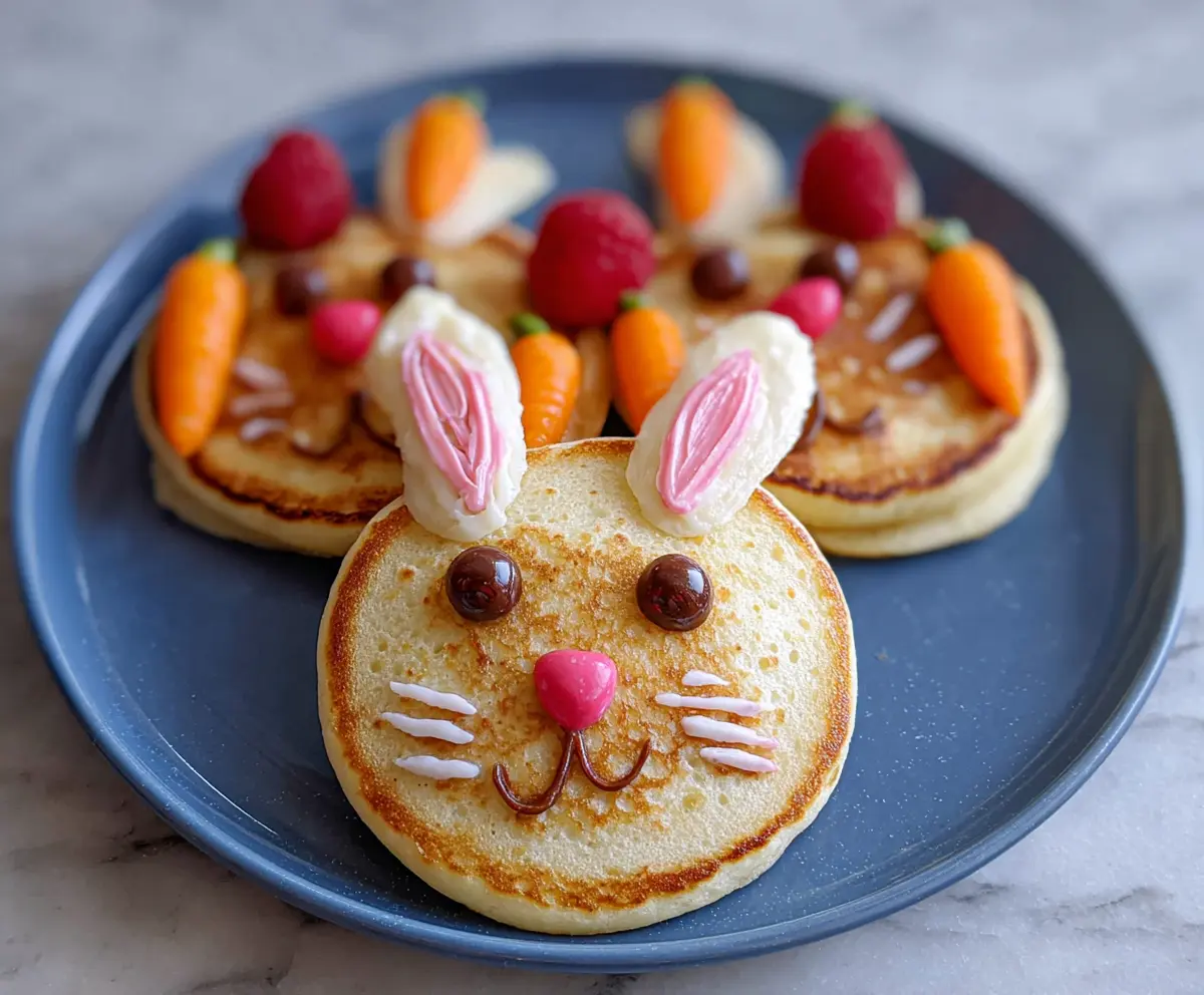 To give your Easter Bunny Pancake Bites a festive look, garnish the plate with fresh raspberries, some fun sprinkles, and if you’d like, add a small whole carrot on the side for a full bunny-themed breakfast. Serve these delightful pancake bites warm, and enjoy!