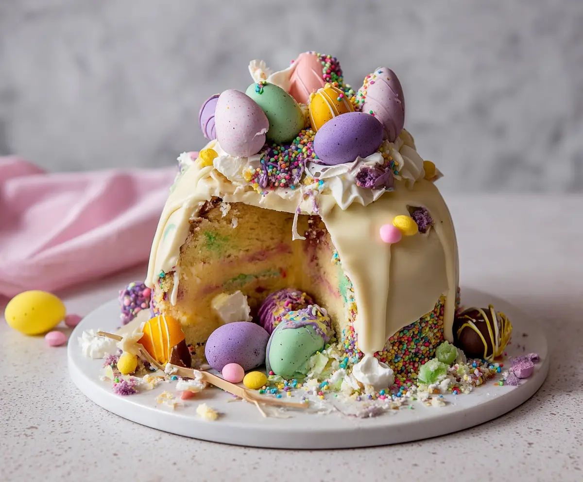 When you smash it open, candy eggs spill out like a party! 🎉 I love bringing this to gatherings, and it always gets excited smiles. Who can resist a cake that’s also a treasure hunt?