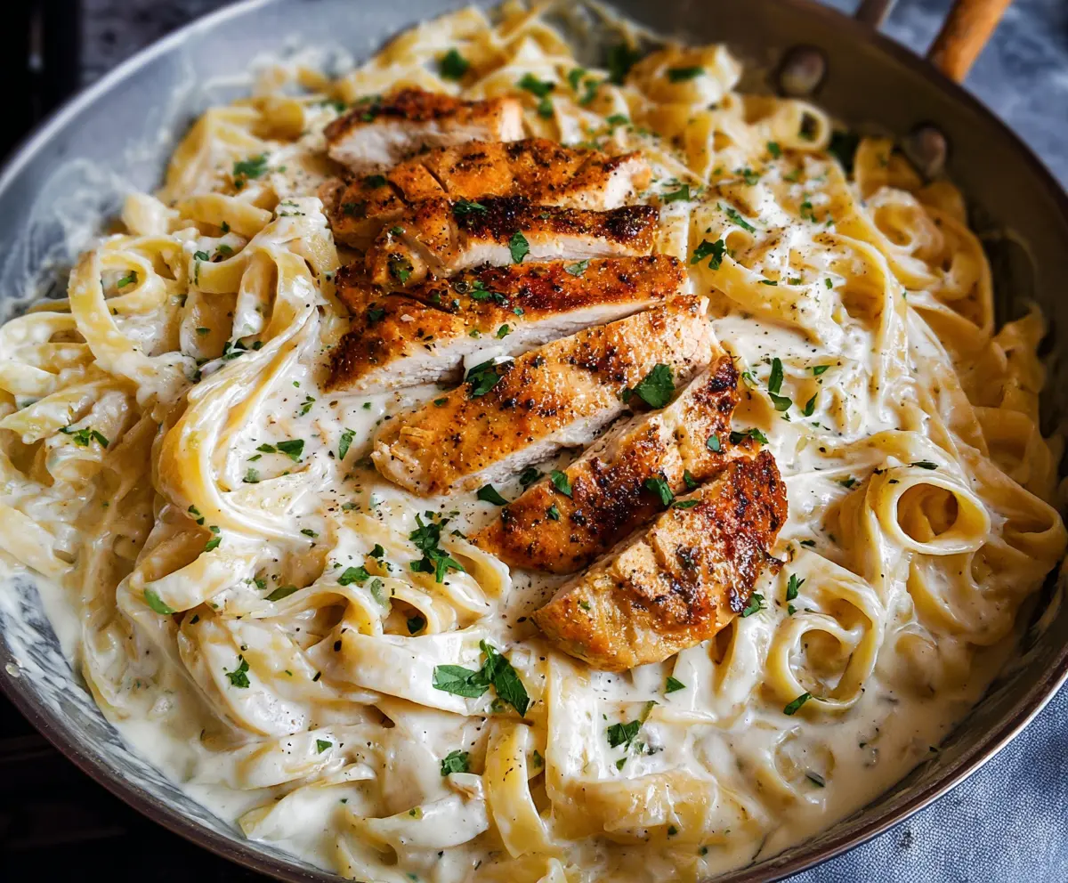 This creamy Fettuccine Alfredo with chicken is like a warm hug on a plate! The rich sauce, made with butter and cheese, coats perfectly cooked fettuccine and tender chicken.