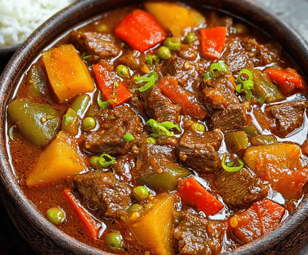 Filipino Beef Caldereta is a yummy stew made with tender beef, potatoes, and veggies, all cooked in a rich tomato sauce. It’s hearty and perfect for sharing with family!