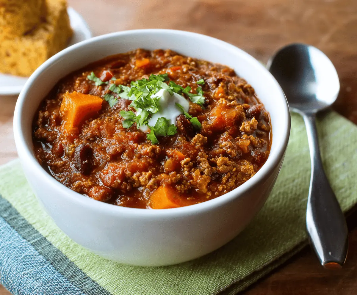 Serve the chili hot and, if you’d like, top it with a dollop of sour cream or Greek yogurt and a sprinkle of fresh cilantro. Enjoy every comforting bite!