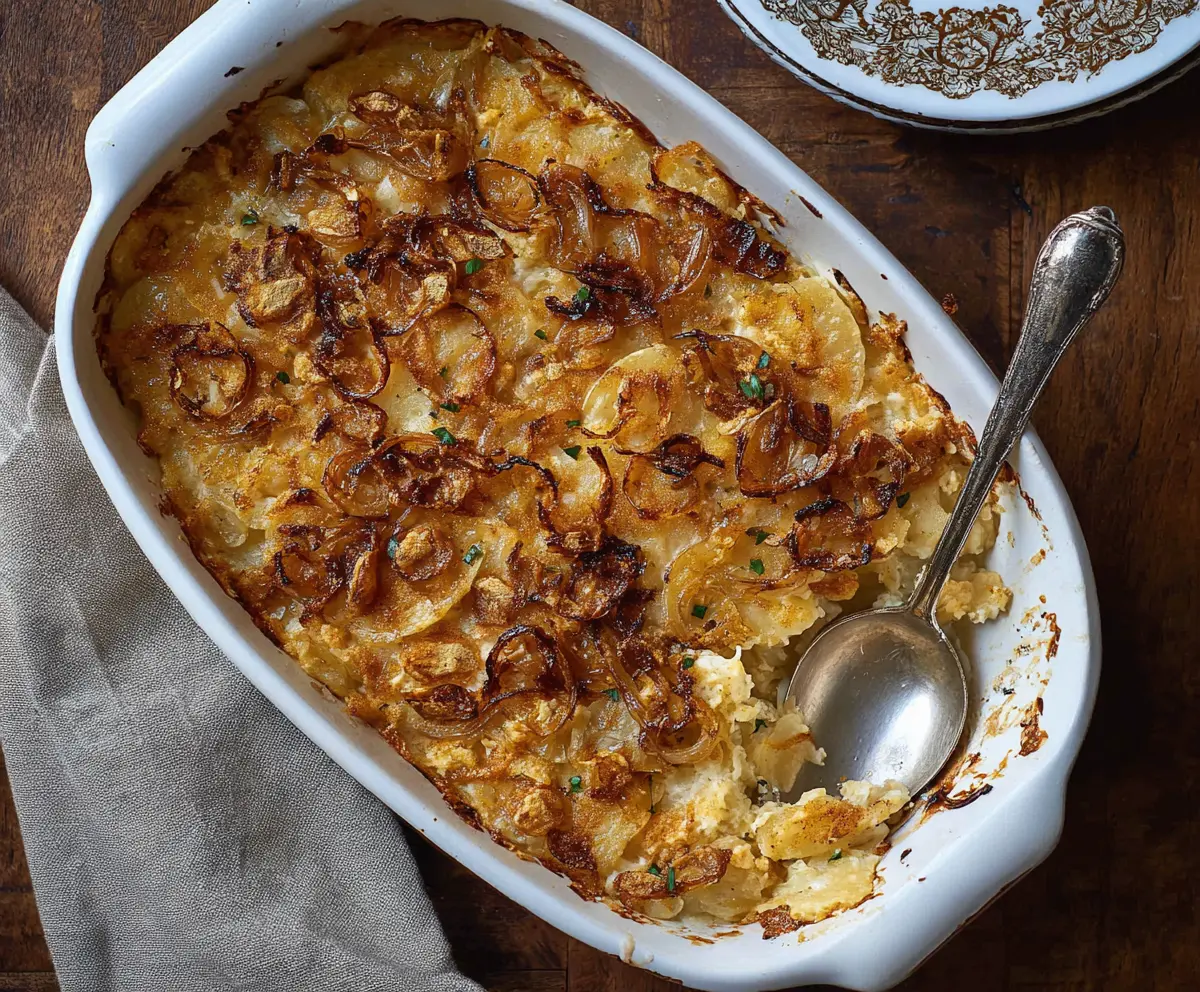 This French Onion Funeral Potatoes dish is perfect for gatherings or a cozy night in. Enjoy every cheesy, flavorful bite!