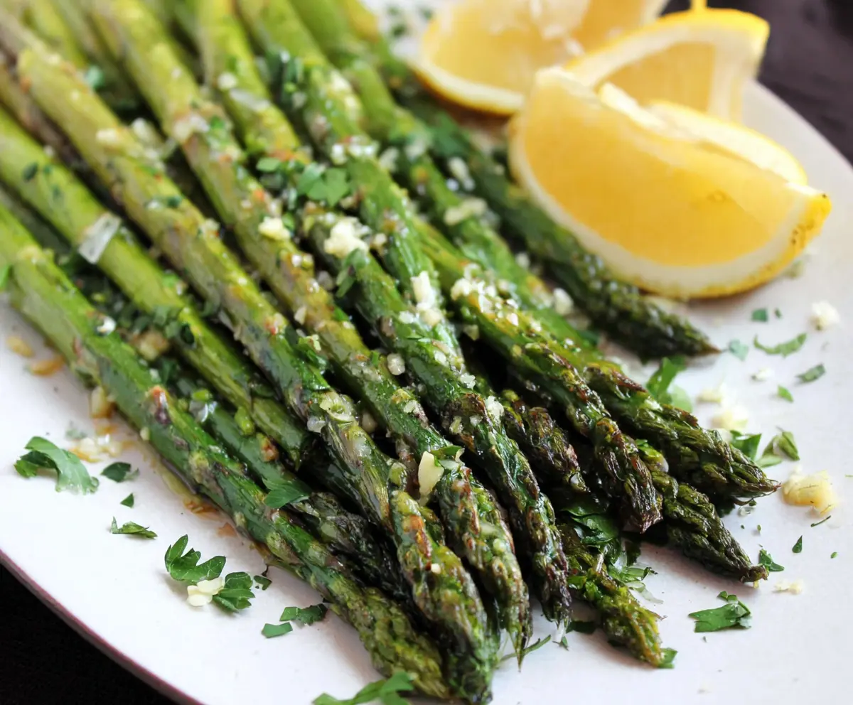 Serve the asparagus immediately with lemon wedges on the side. Squeeze some fresh lemon juice over the asparagus just before eating to brighten up the flavors even more. Enjoy your tasty roasted asparagus!