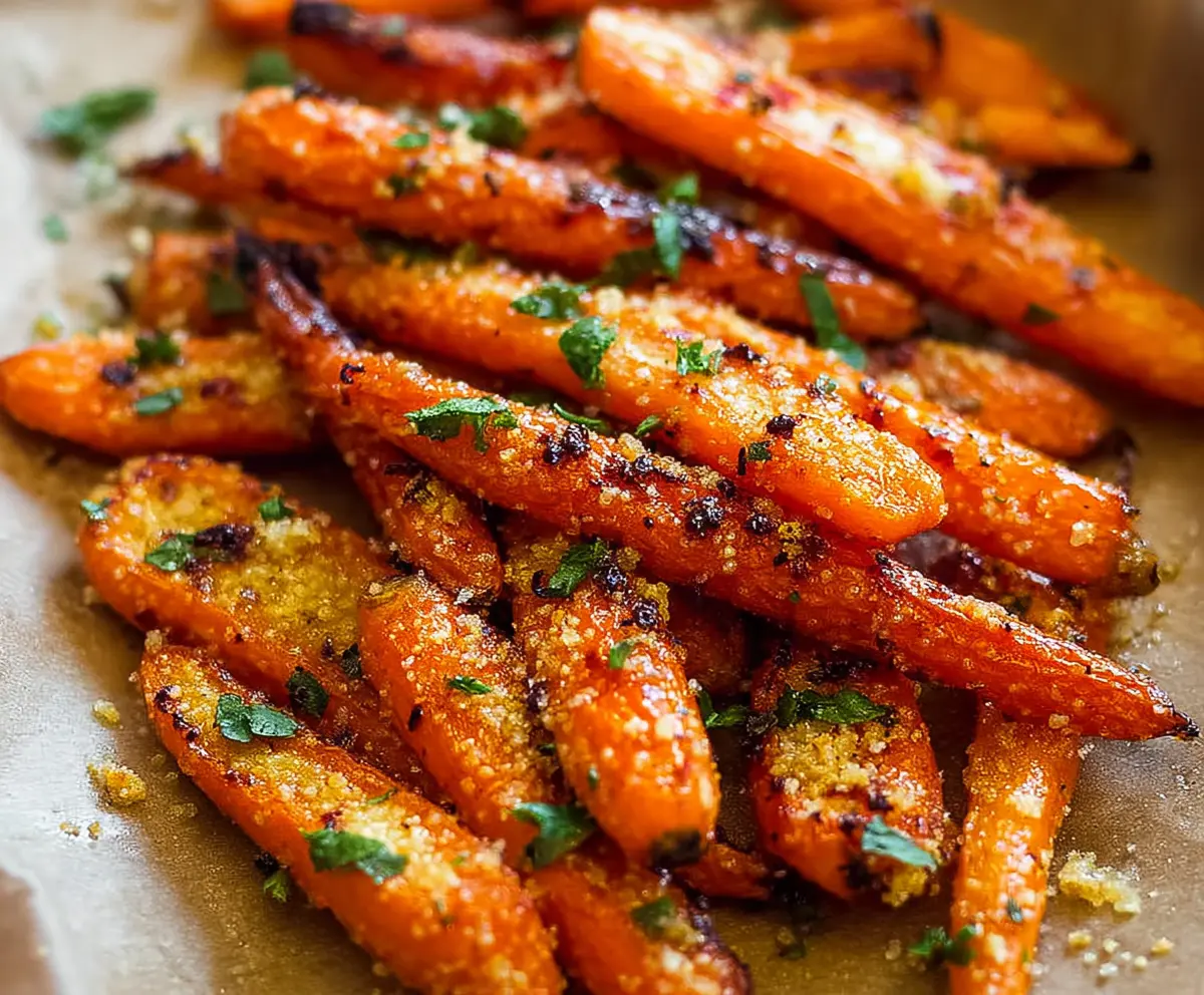 These Garlic Parmesan Roasted Carrots are a tasty side dish that everyone will love! Roasting brings out their sweetness, and the garlic and Parmesan add a yummy flavor.