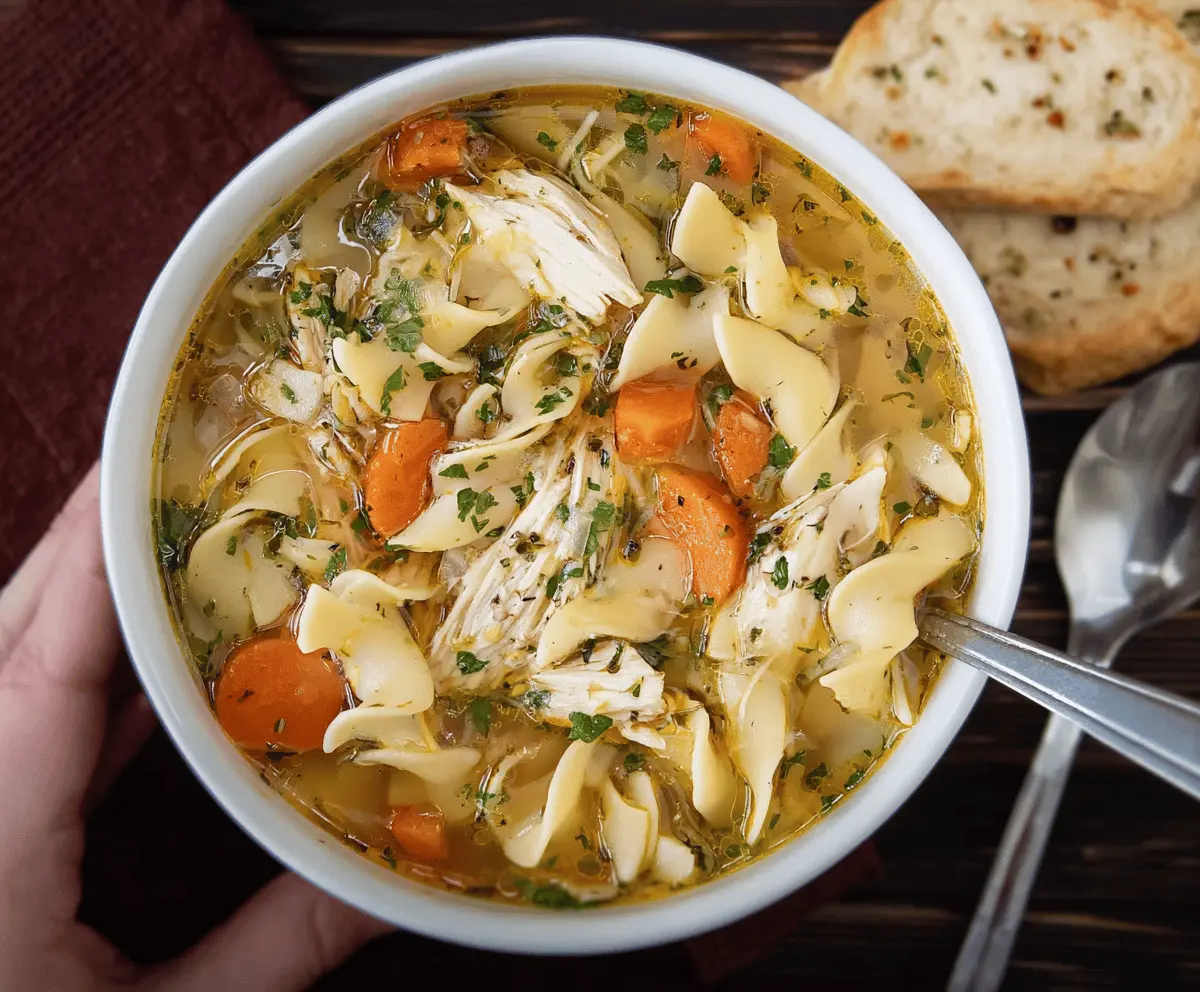 This comforting chicken noodle soup is like a warm hug in a bowl. It’s made with tender chicken, fresh veggies, and cozy noodles to keep you feeling great!