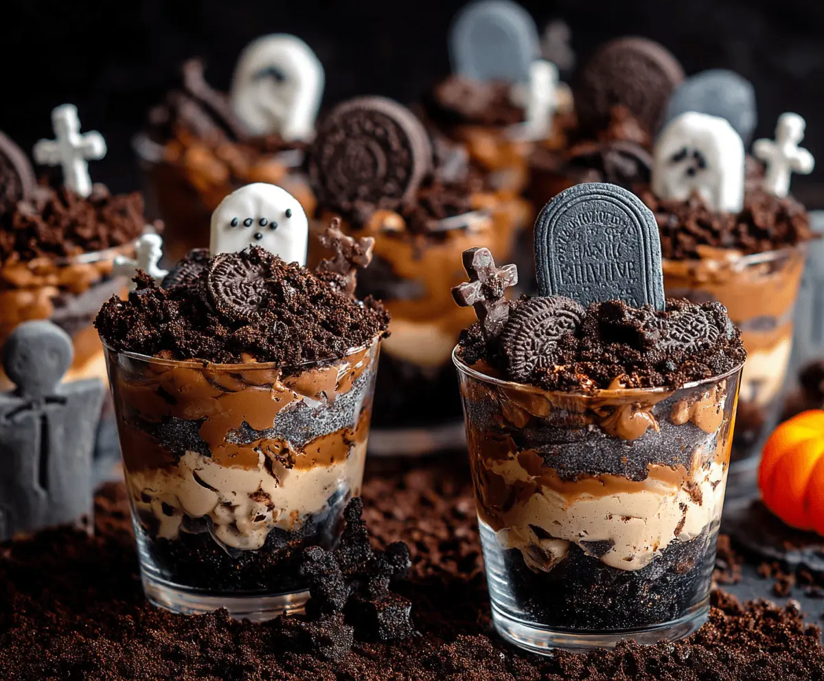When it’s time to indulge, serve these spooky Graveyard Dirt Cups to your excited guests. Enjoy digging into these spooky and delicious desserts!