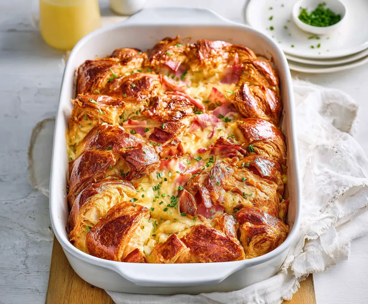 This Ham and Cheese Croissant Casserole is a warm and cozy dish that’s perfect for breakfast or brunch. Soft croissants soaked in a creamy egg mix make every bite rich and tasty!