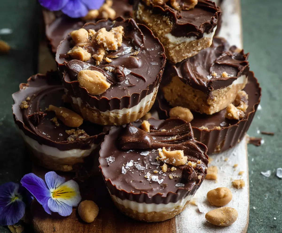 Before the chocolate sets, quickly sprinkle the tops with chopped peanuts and, if you like, some dark chocolate shavings. Gently press them into the chocolate so they stick. Add edible flowers for a pretty touch if desired!