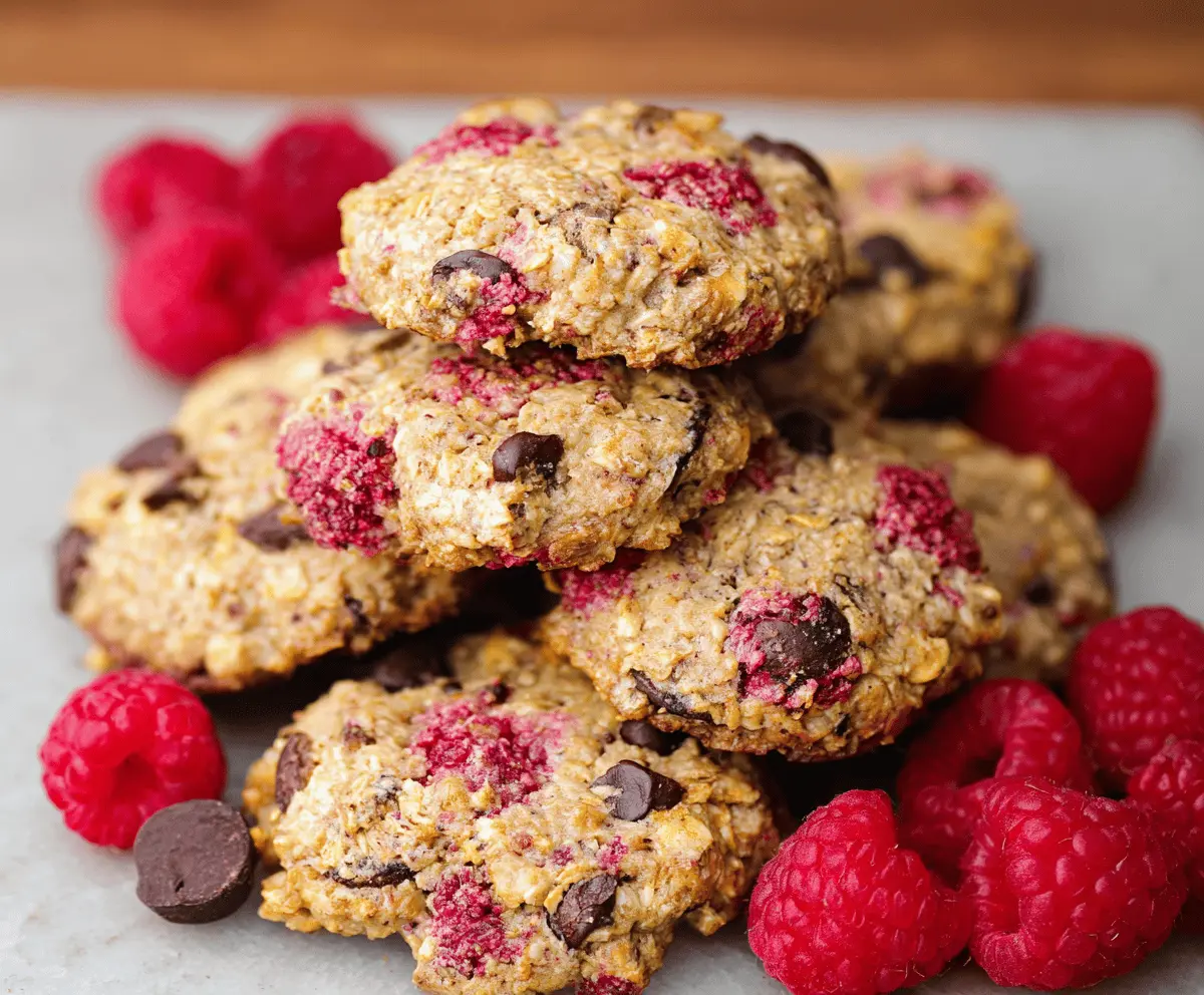 These healthy raspberry cookies make a great snack or breakfast treat filled with natural sweetness and a delightful berry burst! Enjoy the deliciousness!