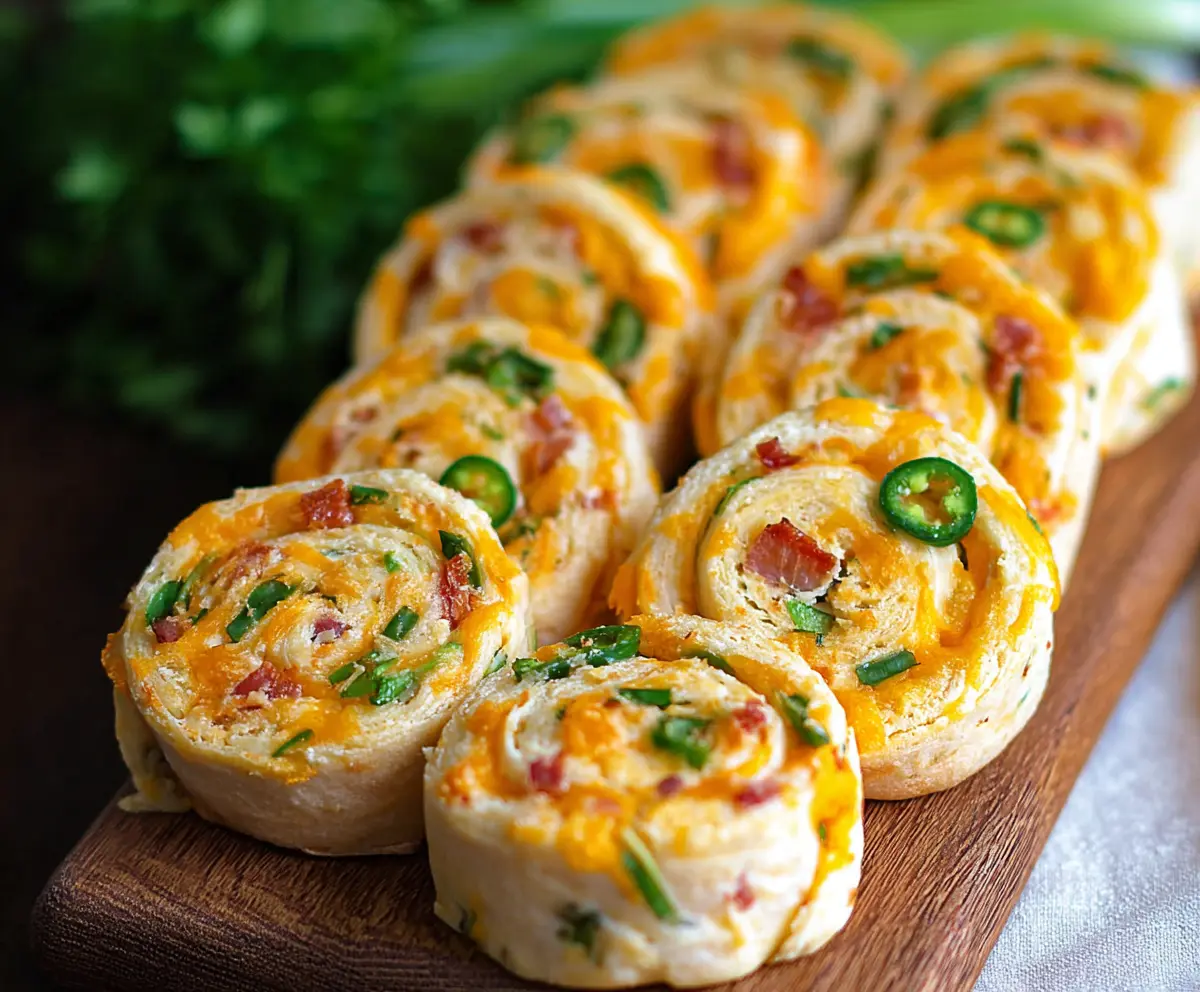 Jalapeno Popper Pinwheels are a fun and tasty snack! These rolled-up bites are filled with cream cheese, jalapenos, and shredded cheese, all wrapped in a tortilla.
