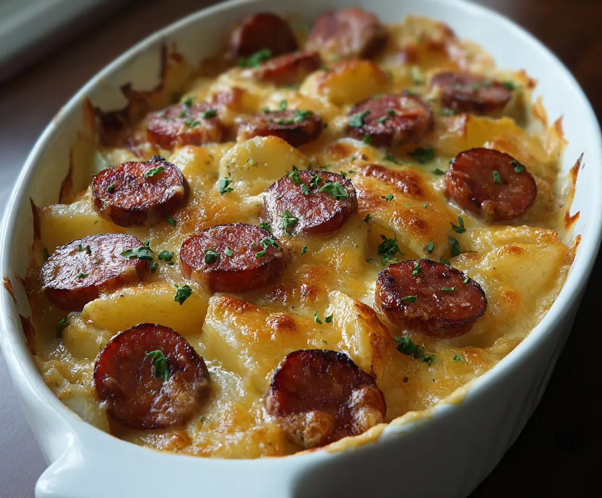 Kielbasa Sausage Cheesy Potato Casserole