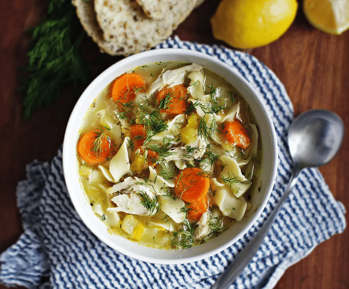 Enjoy your bright, flavorful Lemon Dill Chicken Noodle Soup that combines tender chicken, hearty noodles, fresh dill, and zesty lemon for a warming and comforting meal!