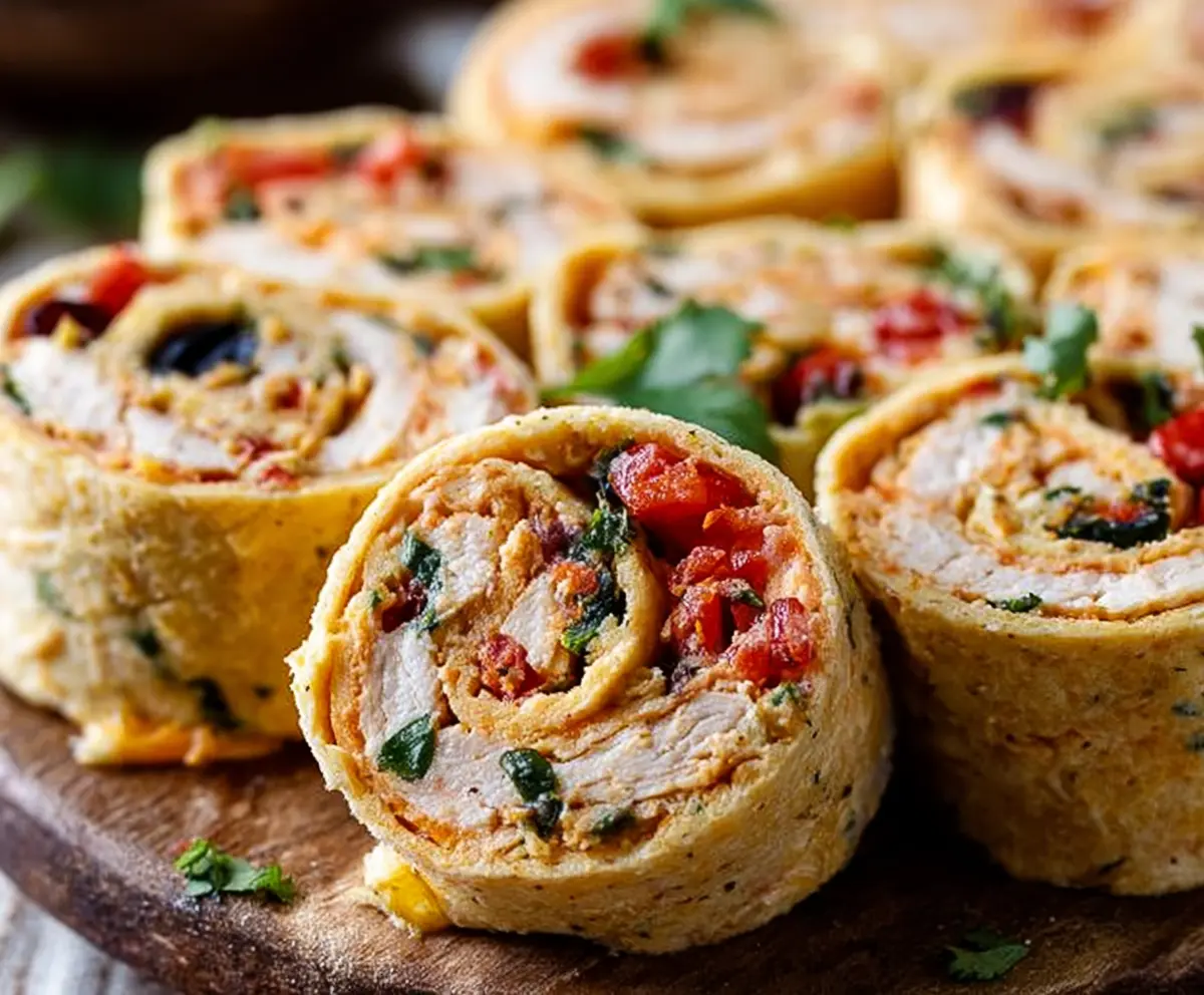 Mexican Chicken Pinwheel Roll-ups are fun and tasty bites! They’re made with creamy cheese, spicy chicken, and colorful veggies all wrapped up in soft tortillas. Perfect for parties!