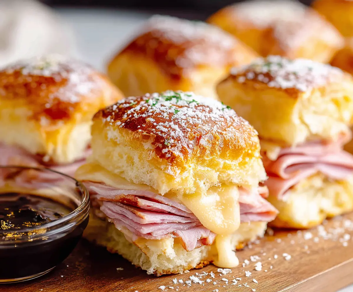 Monte Cristo Sliders are a fun twist on the classic sandwich! They combine ham, turkey, and cheese, all tucked inside sweet Hawaiian rolls. Each bite is soft and tasty!