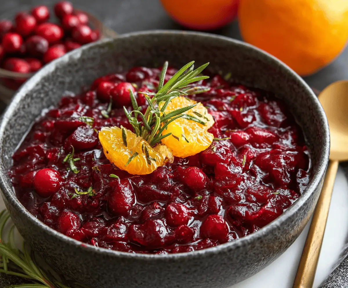 Transfer the cranberry sauce to a serving bowl. You can garnish it with fresh rosemary sprigs and orange slices if you want it to look extra fancy!