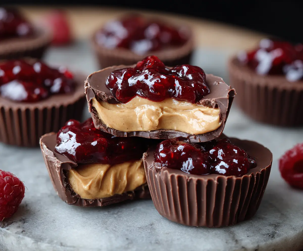 These Peanut Butter and Jelly Cups are the perfect sweet treat! Imagine creamy peanut butter nestled inside a chocolate shell, topped with a burst of fruity jelly. Yum!