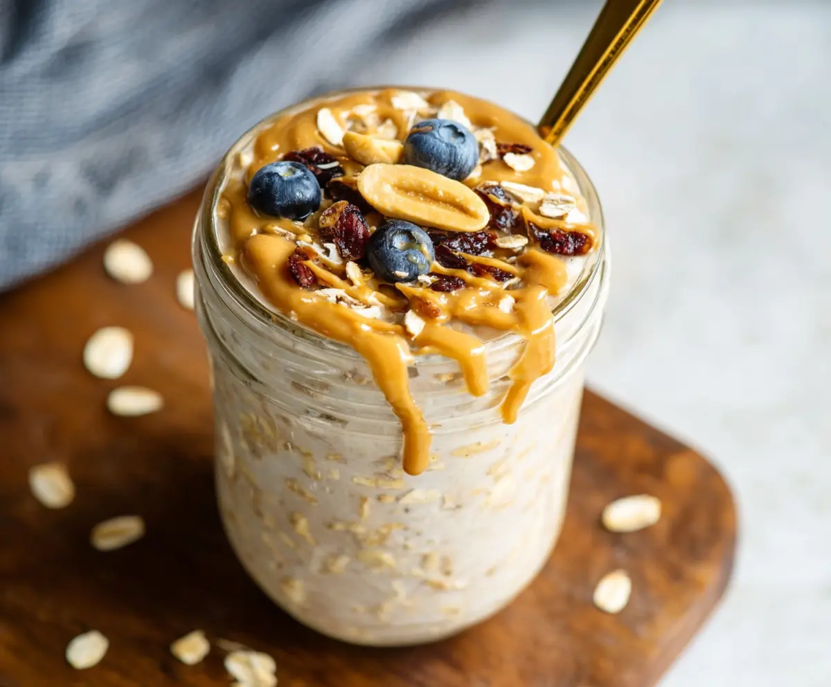 Dig in with a spoon and enjoy your creamy, nutritious peanut butter overnight oats. Perfect for a quick breakfast that keeps you energized all morning long!
