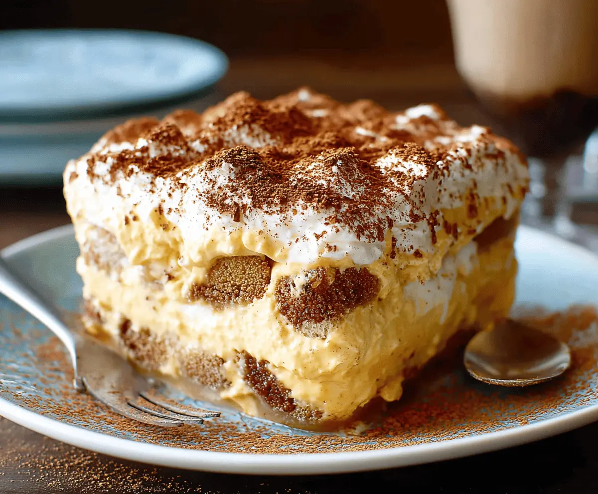 This Pumpkin Chai Tiramisu is a cozy twist on the classic dessert! It layers soft ladyfingers with creamy pumpkin and chai-spiced goodness, creating a warm and inviting treat.