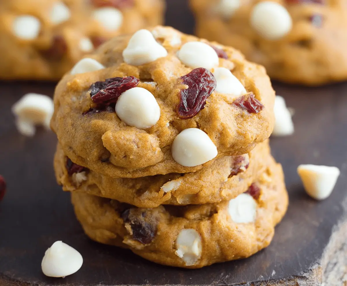 These Pumpkin Cranberry White Chocolate Cookies are a yummy treat that combines the flavors of fall! Soft and chewy, with sweet white chocolate and tangy cranberries, every bite is a delight.