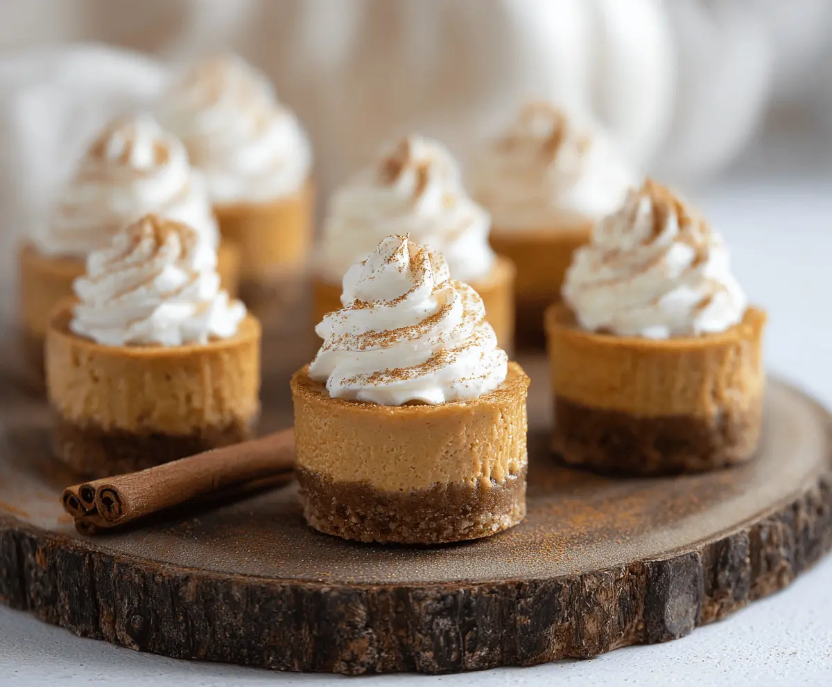 When you’re ready to serve, carefully remove the mini cheesecakes from the muffin tin. Top each one with a swirl of whipped cream and a sprinkle of ground cinnamon or pumpkin pie spice. Now you’re all set to enjoy these delicious bite-sized pumpkin delights!
