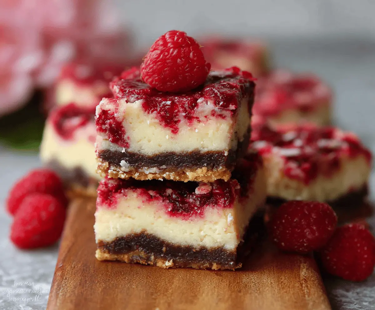 Enjoy your creamy, chocolaty raspberry cheesecake bars that are perfect for any occasion!