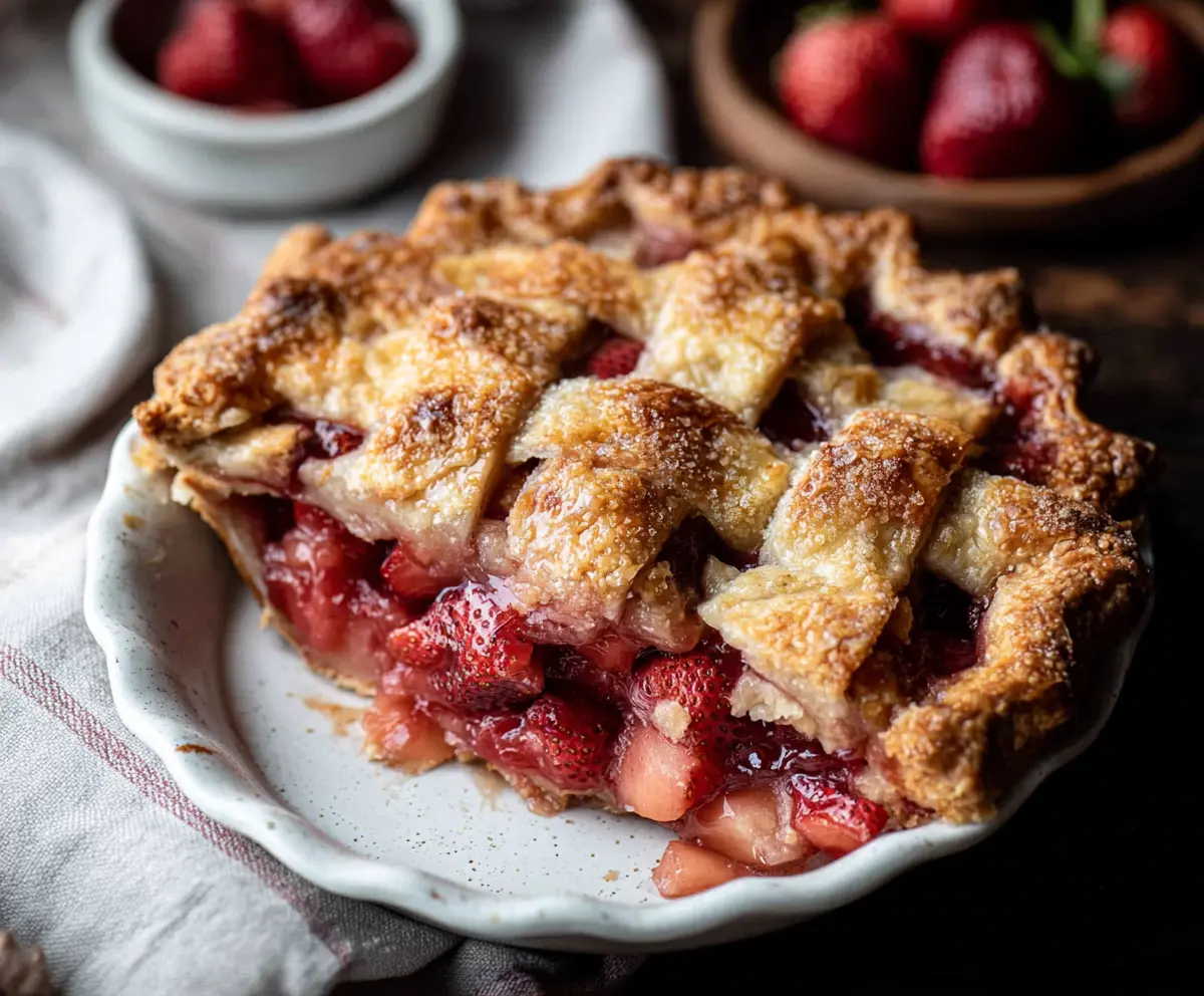 This classic dessert beautifully balances the tartness of rhubarb with the sweetness of strawberries, all tucked under a flaky, golden lattice crust. Bon appétit!