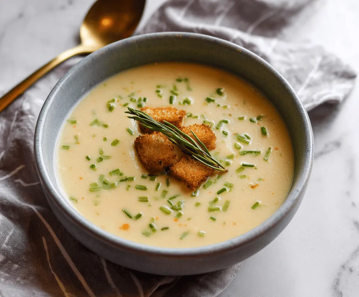 Serve your creamy soup hot, topped with crunchy croutons, a sprinkle of fresh chives, and a drizzle of good-quality olive oil for that gourmet touch!
