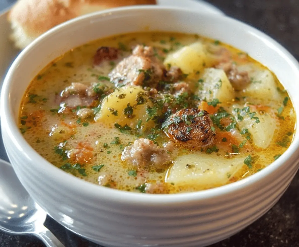 This hearty Sausage Potato Soup is warm and yummy! It has tasty sausage, soft potatoes, and a hint of creaminess that makes each spoonful a delight.