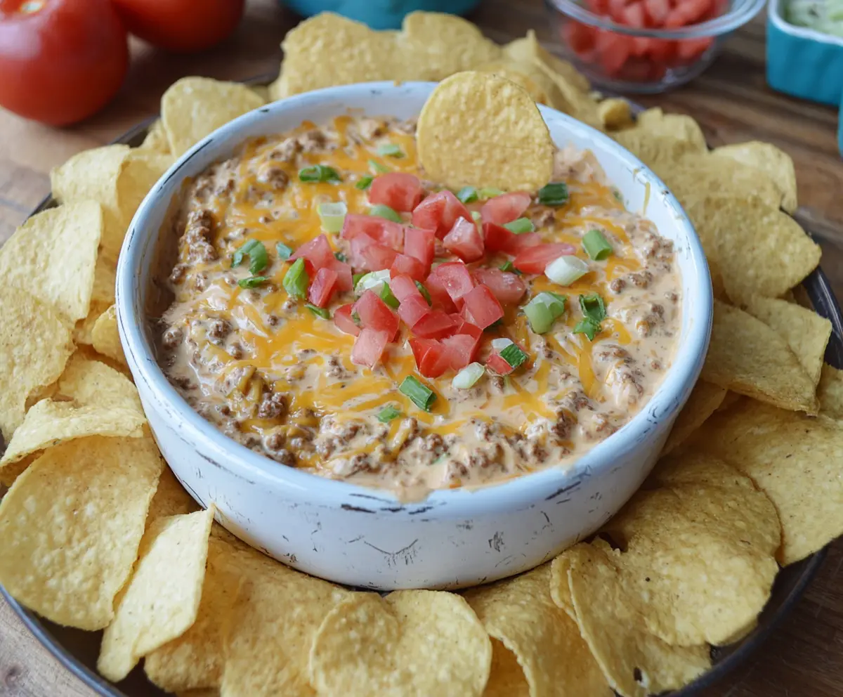 I love serving it with crunchy chips—perfect for dipping! Plus, it’s like a mini burger party in a bowl. Who can resist that? 🍔