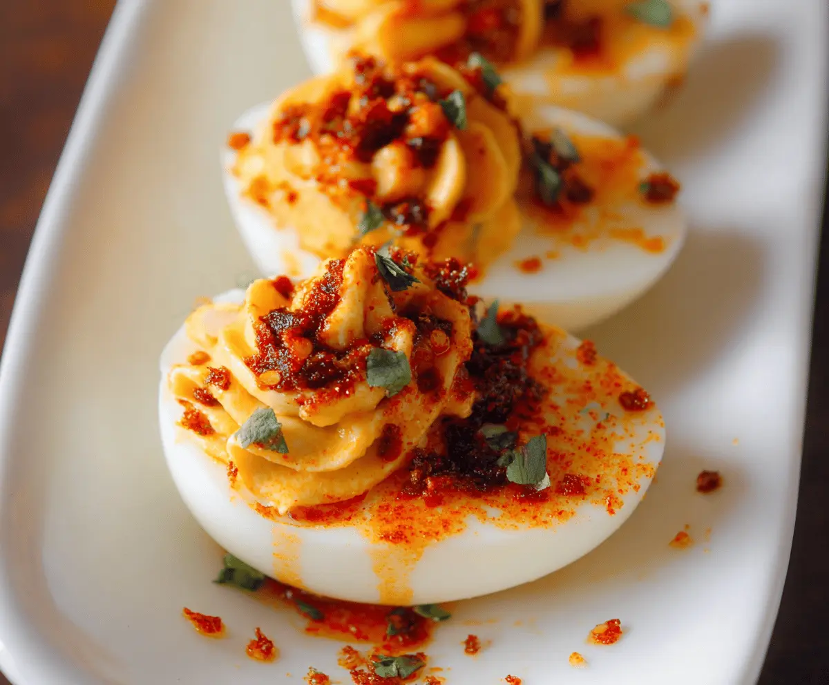 These Spicy Chili Garlic Deviled Eggs take the classic dish up a notch! Loaded with flavor from garlic and a little heat from chili, they’re perfect for parties or snacks.