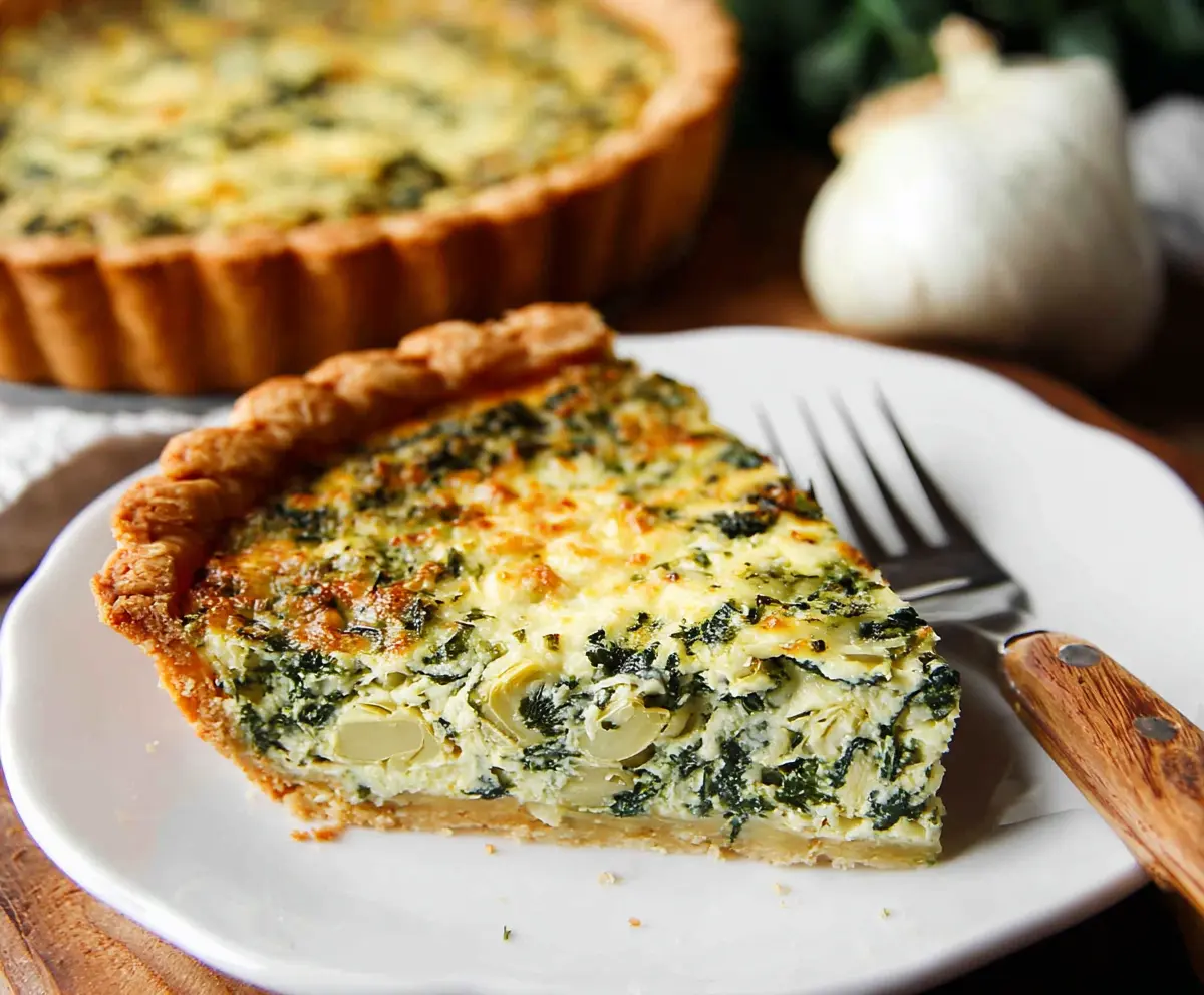 This spinach artichoke quiche is a tasty dish that combines fresh spinach, creamy cheese, and savory artichokes in a flaky crust. Perfect for breakfast or brunch!