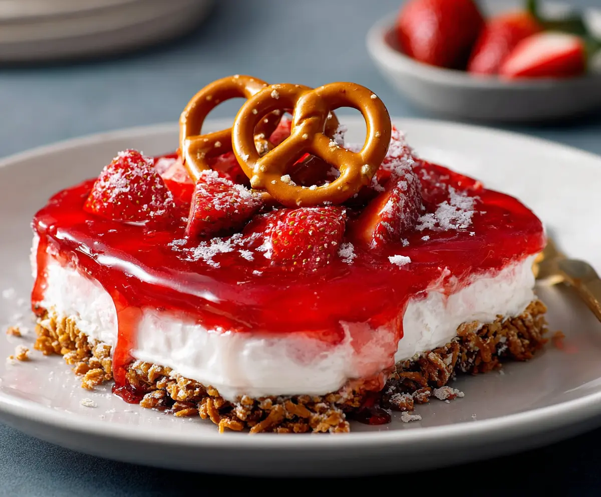 Enjoy your homemade Strawberry Pretzel Dessert, a perfect blend of textures and flavors that everyone will love!