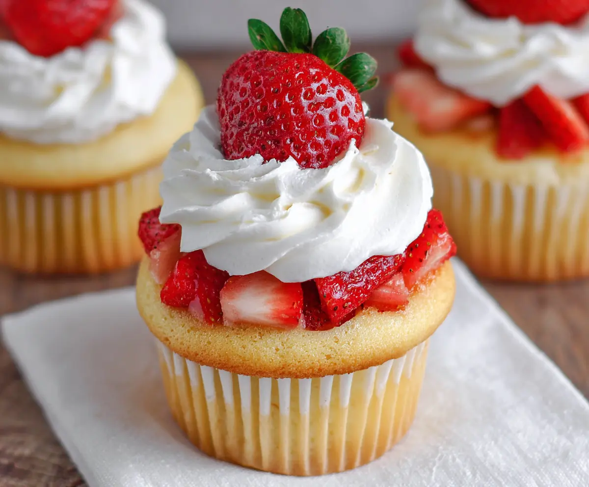 Absolutely! You can bake the cupcakes a day in advance and store them at room temperature in an airtight container. Assemble with strawberries and whipped cream just before serving for the best texture and flavor.