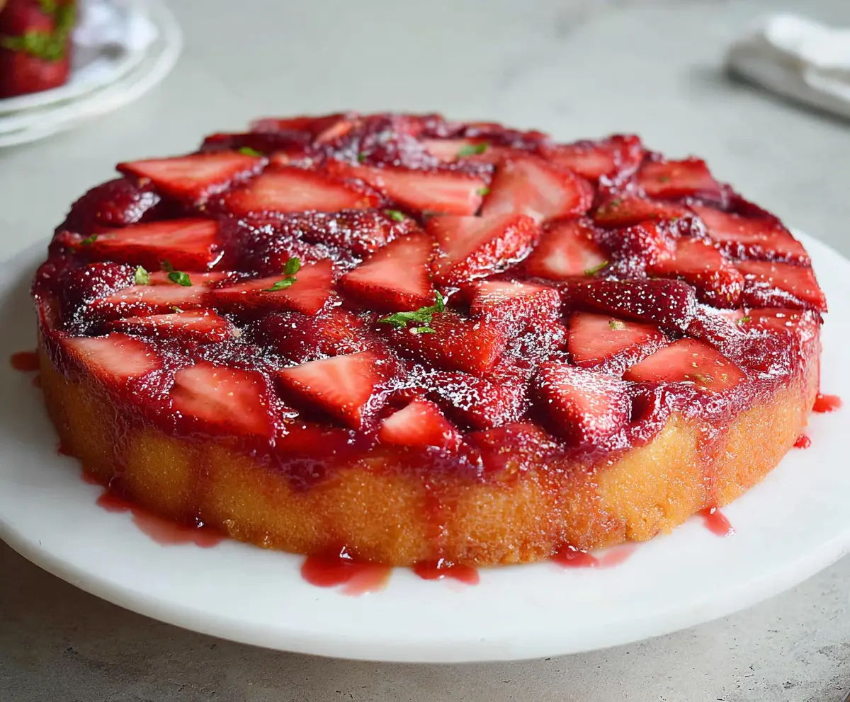 The best part? When you flip it over, the strawberries make a beautiful and tasty design. I love serving this cake warm with a scoop of ice cream—it’s a real crowd-pleaser!