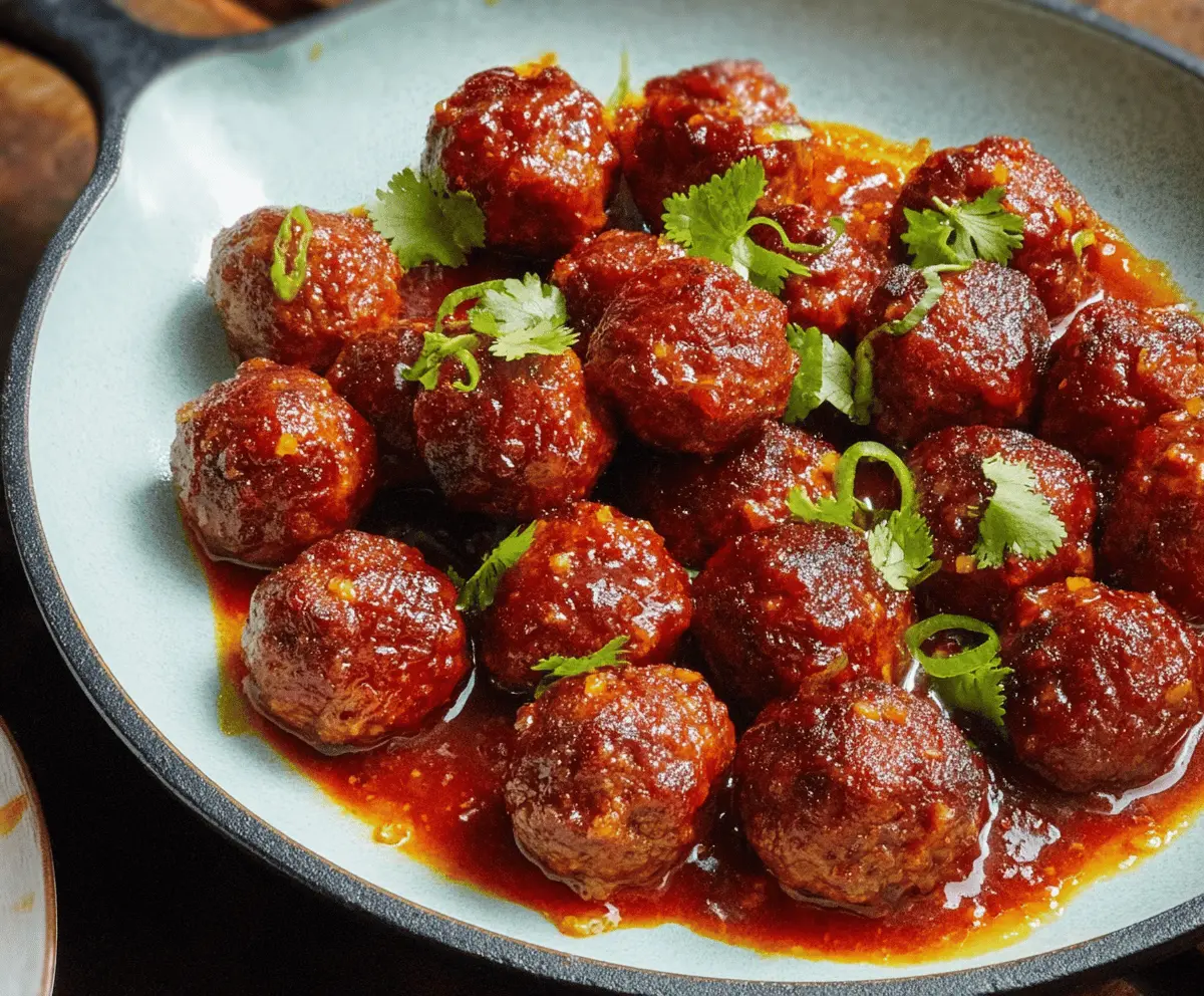 In the same skillet, you used for the meatballs, prepare the sauce by combining honey, soy sauce, rice vinegar, Sriracha, minced garlic, and grated ginger. Bring this mixture to a simmer over medium heat, stirring well.